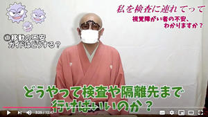 【全盲の落語家・桂福点さん】斎藤さんのような障害者の不安を知ってもらおうと公開された落語動画が話題を呼んでいる。動画では、携帯電話のテレビ電話機能を利用して家族や友人に体温計の表示を見てもらったり、ガイドヘルパーを含めた他人と距離を取るため新聞紙を丸めた棒を使って案内してもらうなどの対応を提案している。